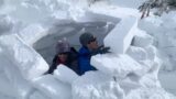 一人で作るとき、内外を出入りするため片側が開いたイグルーができます。