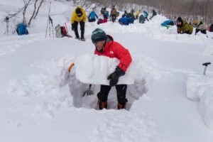 イグルスキーのデモは、中から雪クズを出さずに積み上げるので、掘った穴の分でドームができる。それをだいたい容量計算暗算していた人もいた。感心の仕方も様々だ。