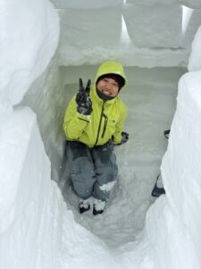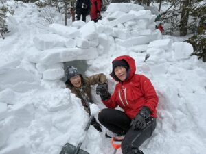 二人のイグルー連結式。手前のも後ろくらい高くサイロになったが、解体再建したら低くて全く問題なし。
