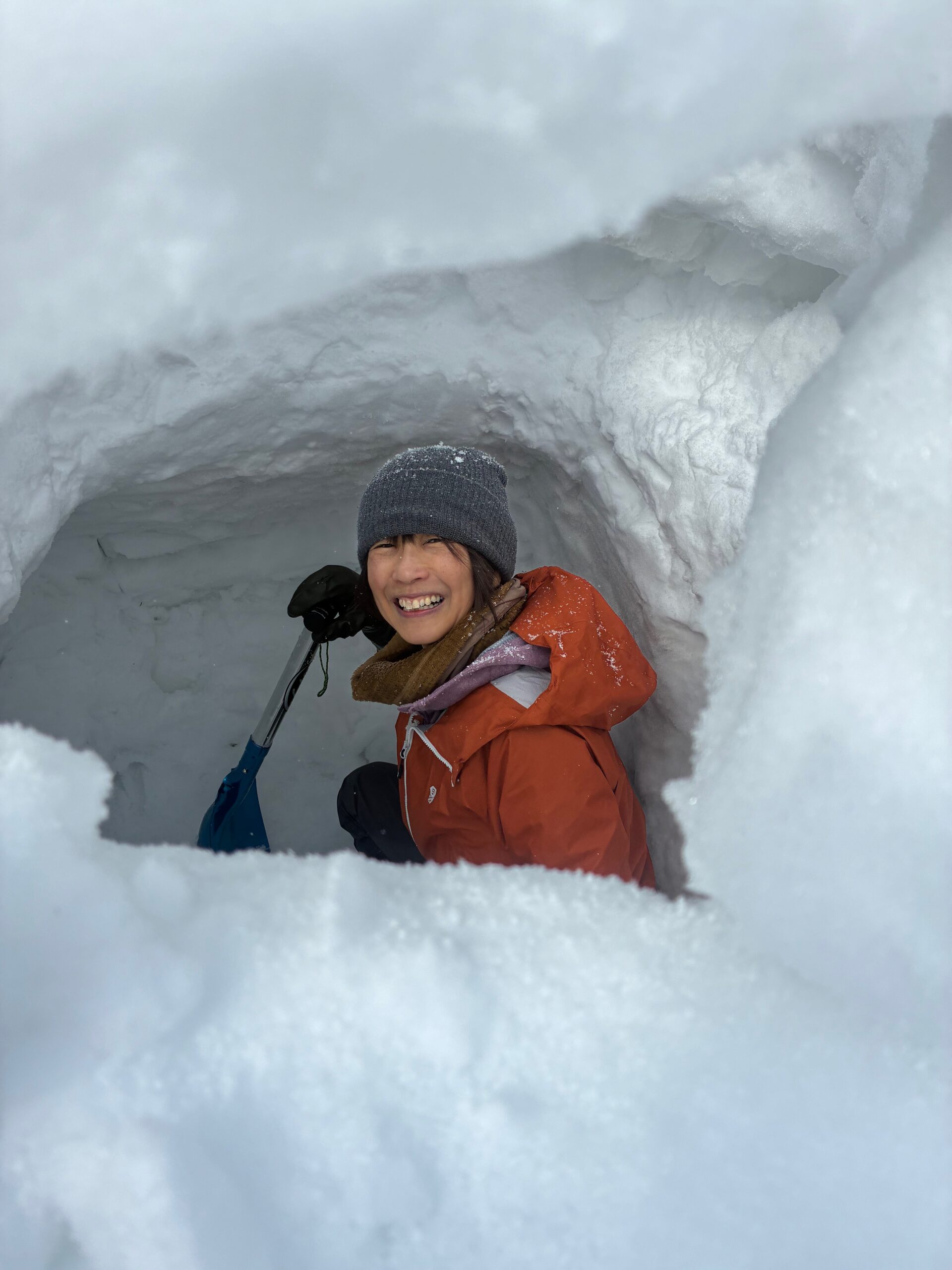 みんな、どんなところで作れる?って聞くけど、答えはどこでも作れるよ、なのだ。半径1mのここで、っていうとムズいけど(でもできる)、半径50mだったらどこでも探せる。雪がいまいちなら、2m変えるだけで全く違うのも何人かに知ってもらった。今年気付いた知見は、ダメそうなら見切りをつけて、すぐ隣に雪取り場所を作れってことです。この助言で何人も完成させた。